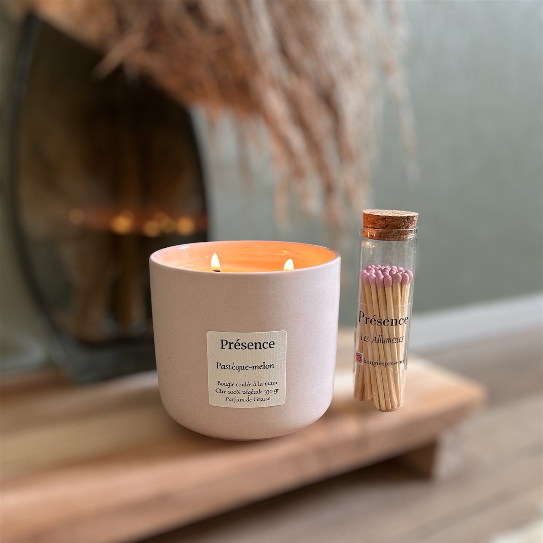 Une fois allumée, laisser la bougies brûler jusqu’à ce que la cire soit fondue sur la totalité de la surface, pour qu’elle ne se creuse pas (1h30 minimum).
