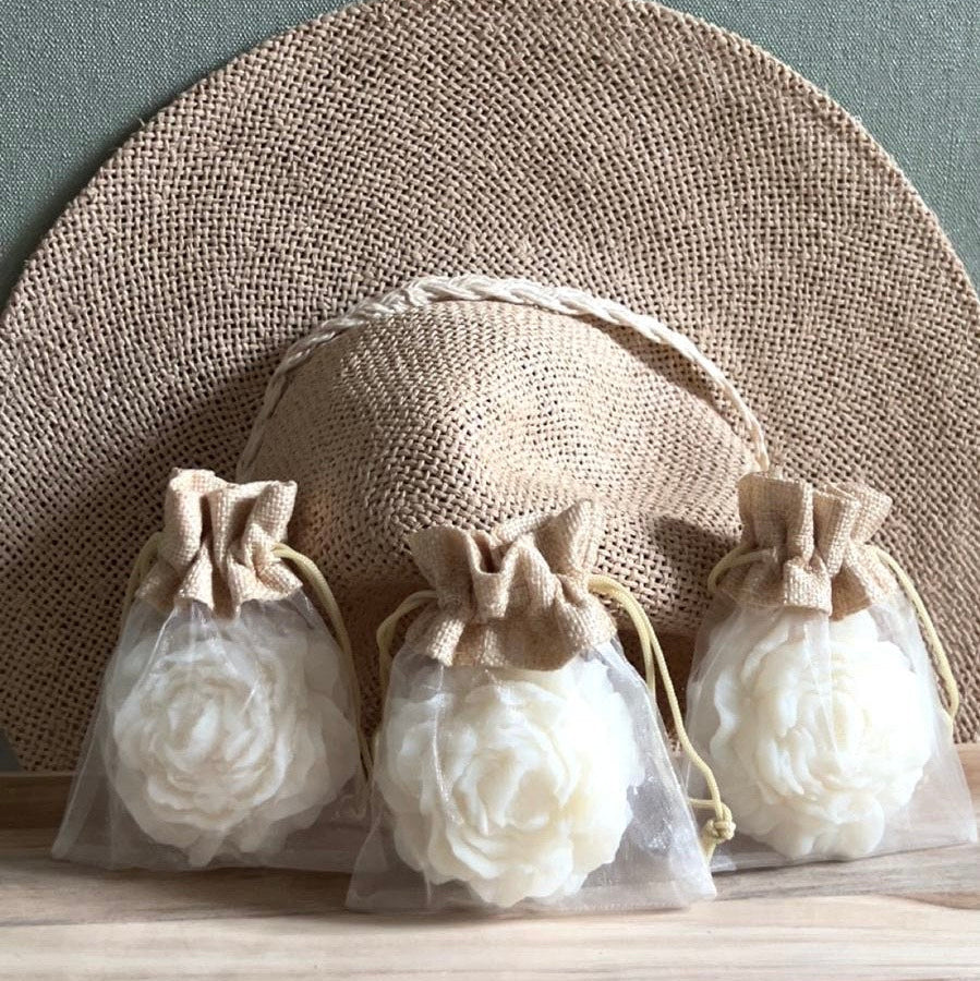 Bougie coulée à la main, composée de cire de Colza sans OGM ni pesticides, de mèches de coton et de parfums élaborés à Grasse sans CMR (substances cancérigènes, mutagènes, toxique pour la reproduction).